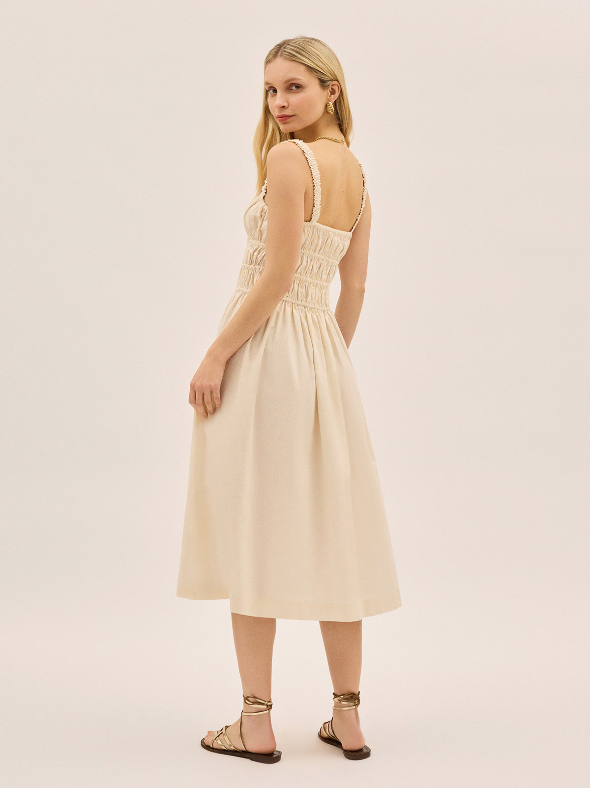 The perfect throw-on-and-go summer dress? Found it. The Arya Dress is all about effortless femininity with its gathered bodice, straight neckline, and elasticated straps for the perfect fit. Designed in a midi length with just the right amount of volume, it’s made from a breathable cotton-linen blend (50% cotton, 50% linen) to keep you cool and comfortable all day long.