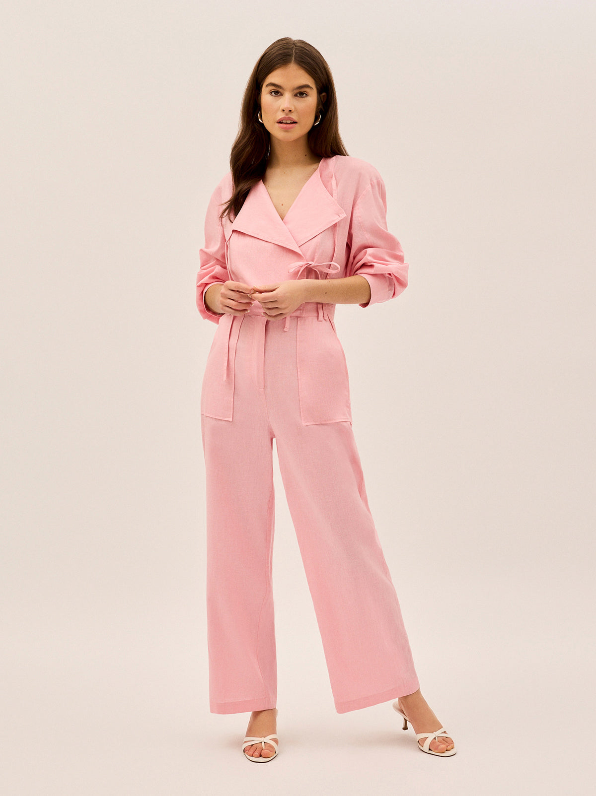 Esther Pink Cotton Linen Jumpsuit