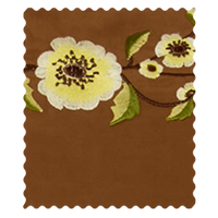 An embroidered design inspired by vintage needlework and the delicate form of poppies. Set against a warm pecan base, ivory petals are softly shaded with yellow and pecan at the centre, while dark brown stems and sage and deep green leaves add depth and contrast. Rich in texture and detail, the embroidery feels thoughtful and timeless, celebrating slow craft and considered design.