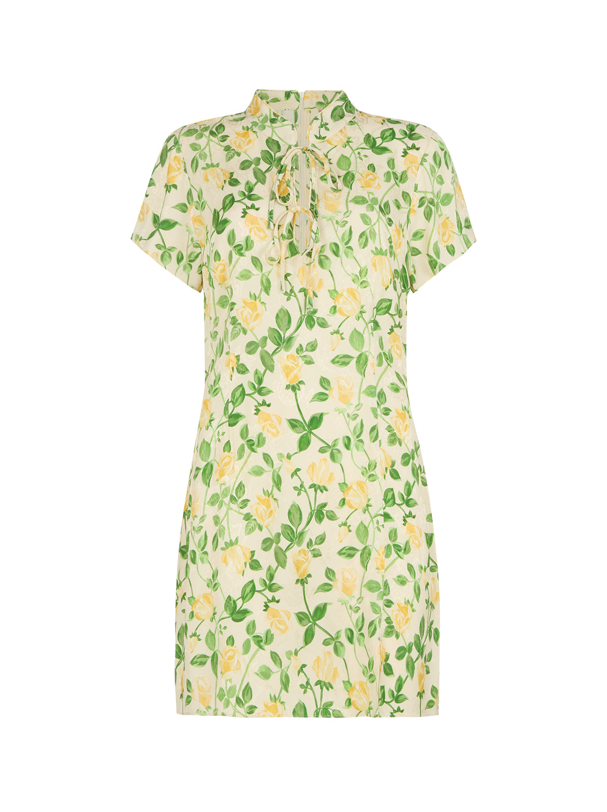 Gretchen Yellow Rose Printed Jacquard Mini Dress