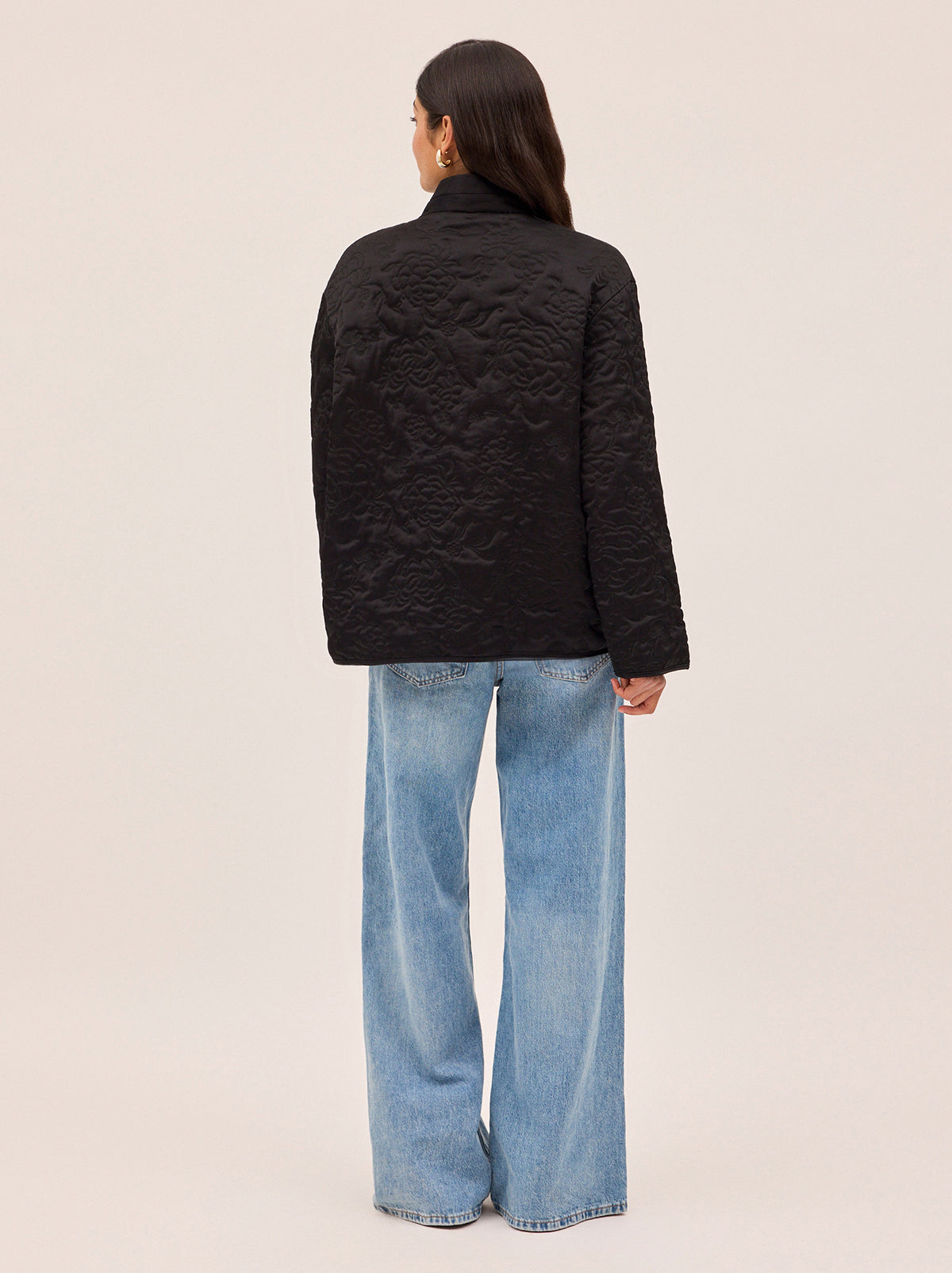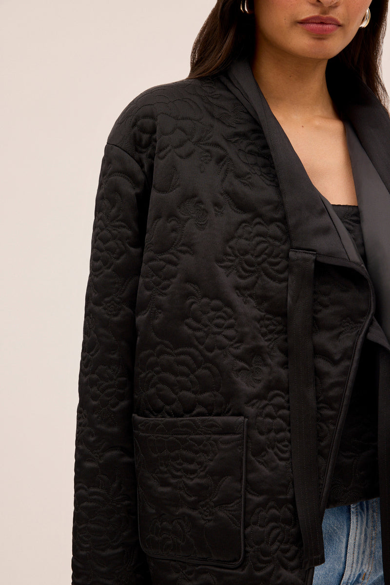 Lightly padded with intricate floral stitching, the quilting adds depth and quiet luxury, making this piece as special as it is wearable.