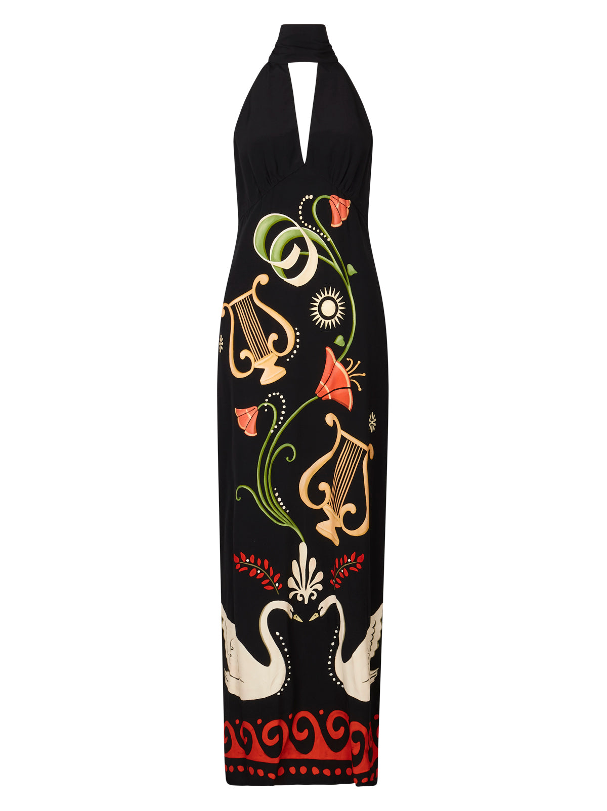 Jacquetta Black Cygnus And Lyra Print Halterneck Maxi Dress By KITRI Studio Jacquetta Black Cygnus And Lyra Print Halterneck Maxi Dress By KITRI Studio