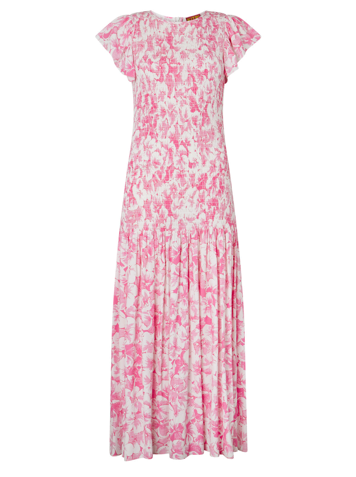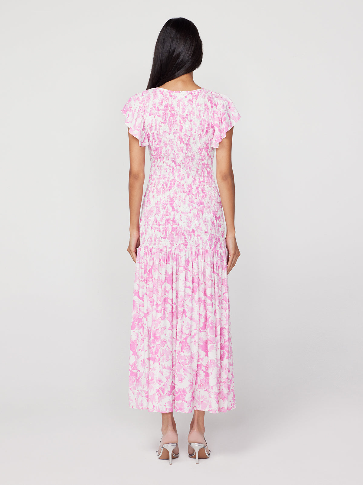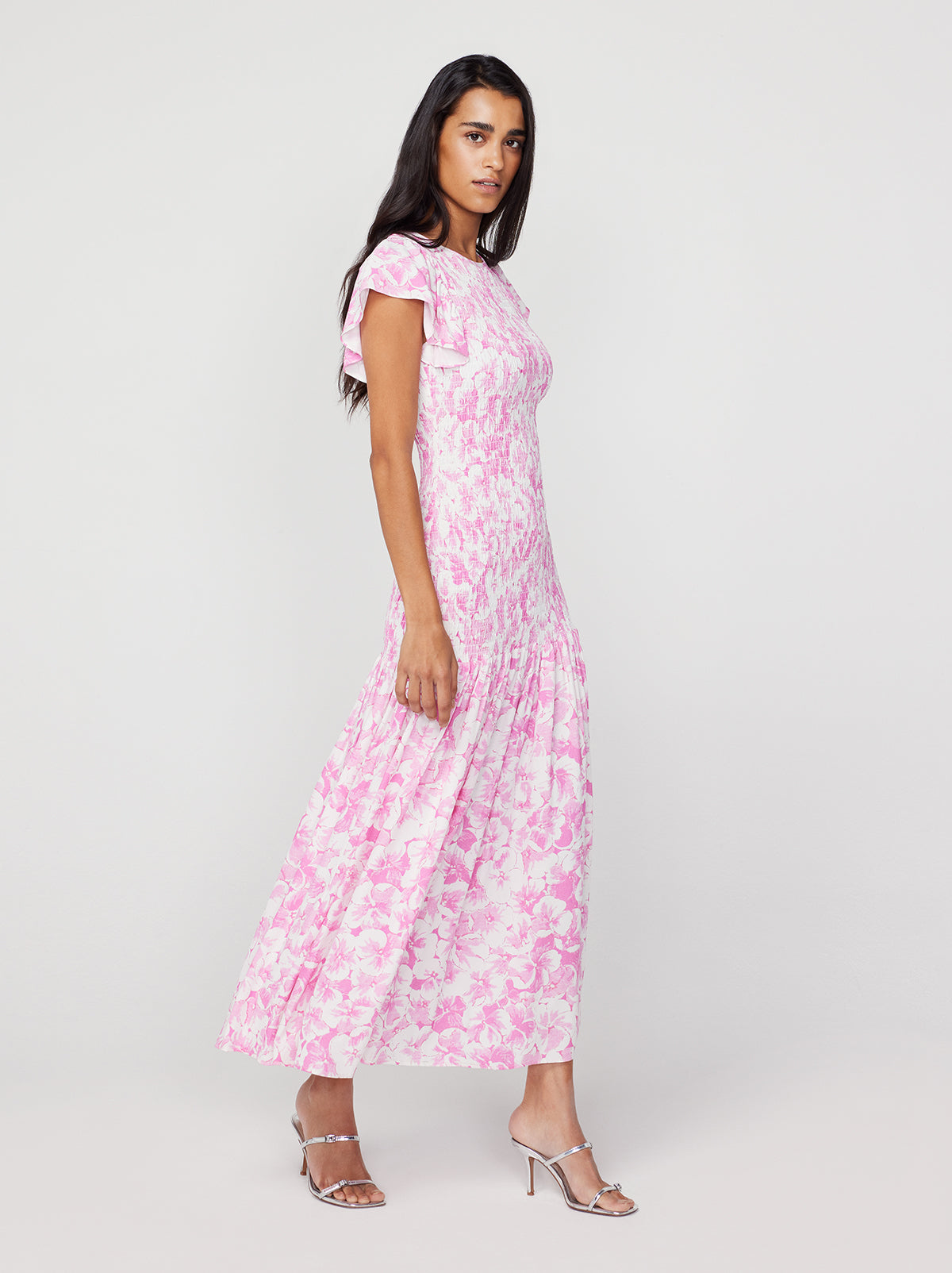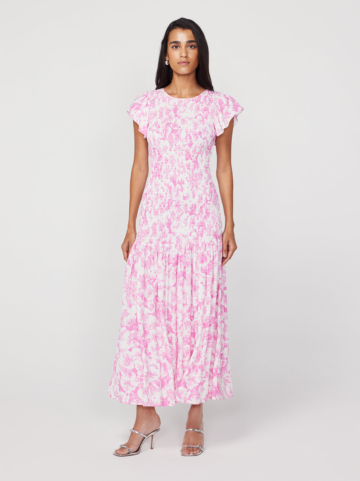 Jemima Pink Pansy Print Shirred Maxi Dress
