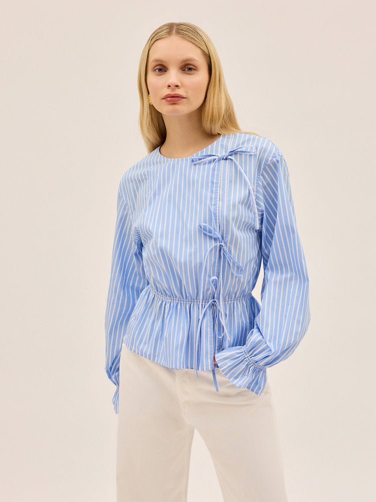 Caryn Blue Striped Cotton Top Caryn Blue Striped Cotton Top