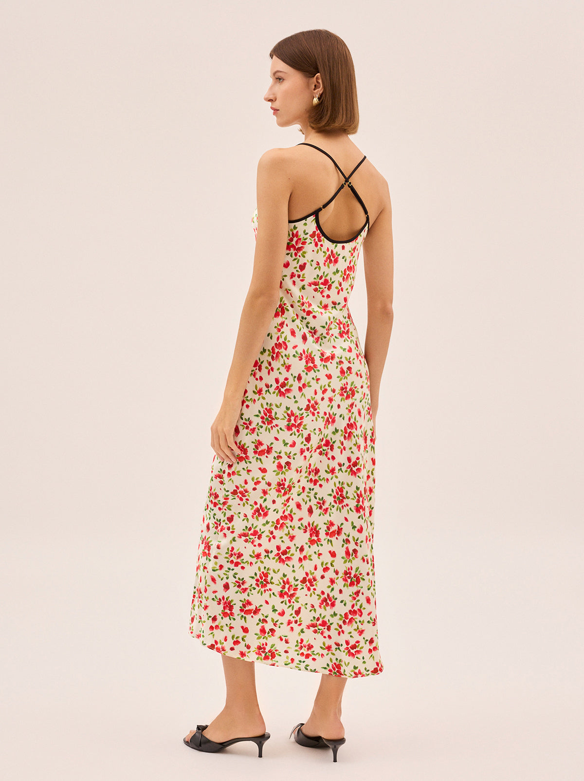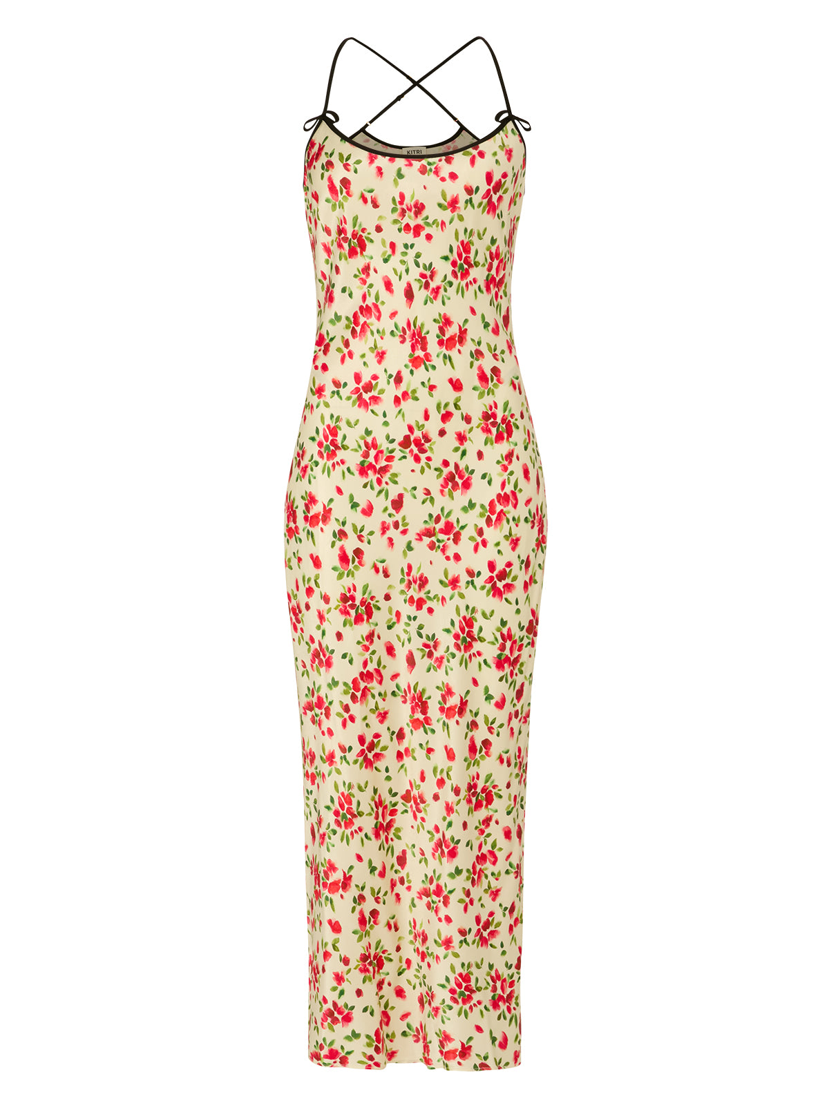 Karla Red Petal Print Dress is cut from fluid satin with just the right amount of stretch for comfort and movement. Bias-cut for a softly draped silhouette, it features in-house painted petal print with modern contrast black straps and piping across the neckline finished with a bow details. Slim straps cross elegantly at the back and adjust for the perfect fit, while the clean square neckline keeps the look modern. Effortless yet striking, it’s a piece that works for evenings out, weddings, and special moments where ease and polish go hand in hand.