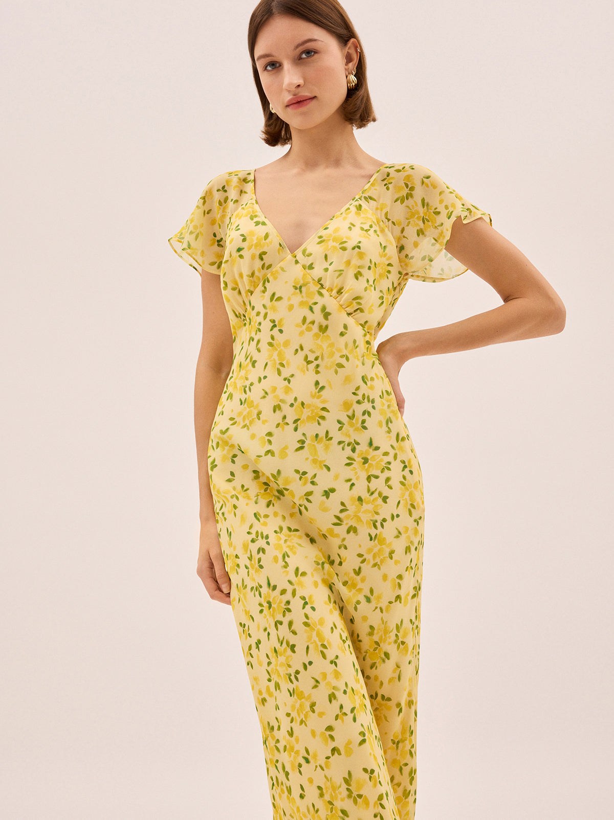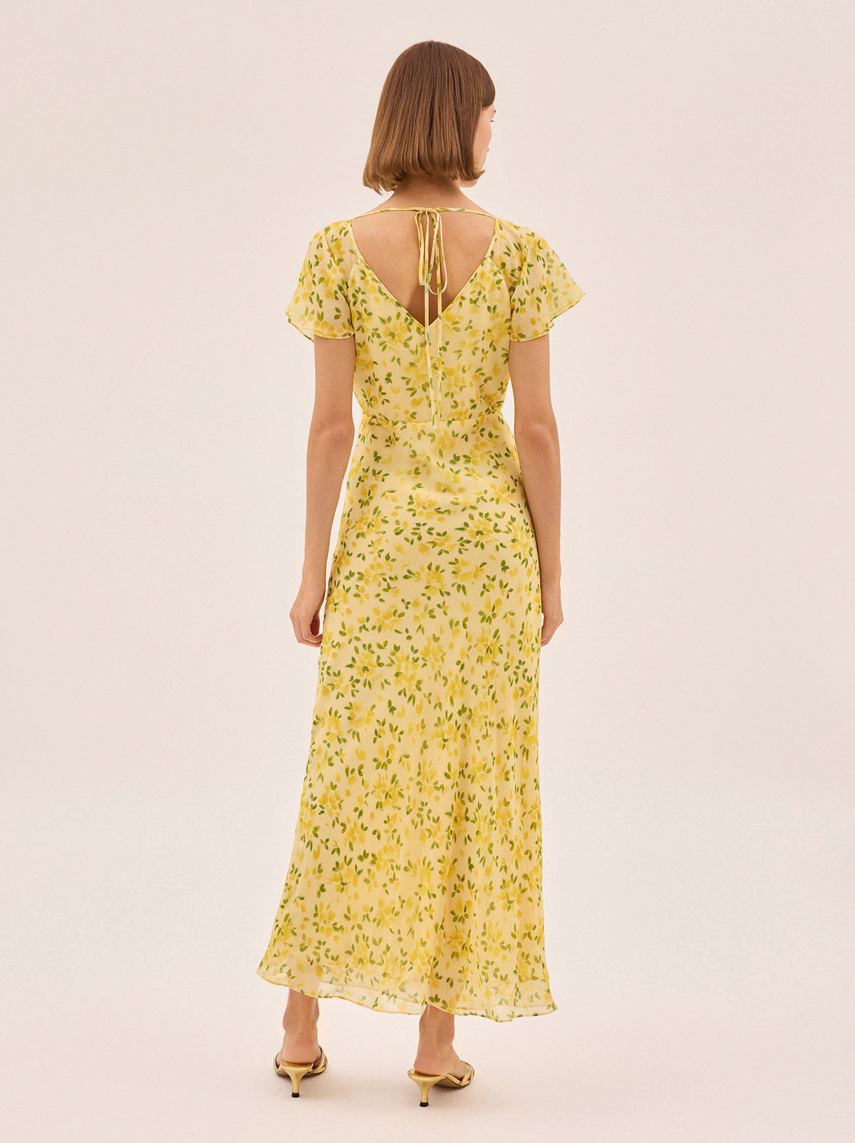 Libby is a breezy bias-cut maxi dress in our painted Butter Petal print. It features a V-neckline, soft angel sleeves and a shape that moves beautifully with you. A small tie at the back shoulder adds a sweet finishing detail. Fully lined and easy to wear, Libby is the kind of dress you reach for on sunny days when you want to feel bright and effortless.