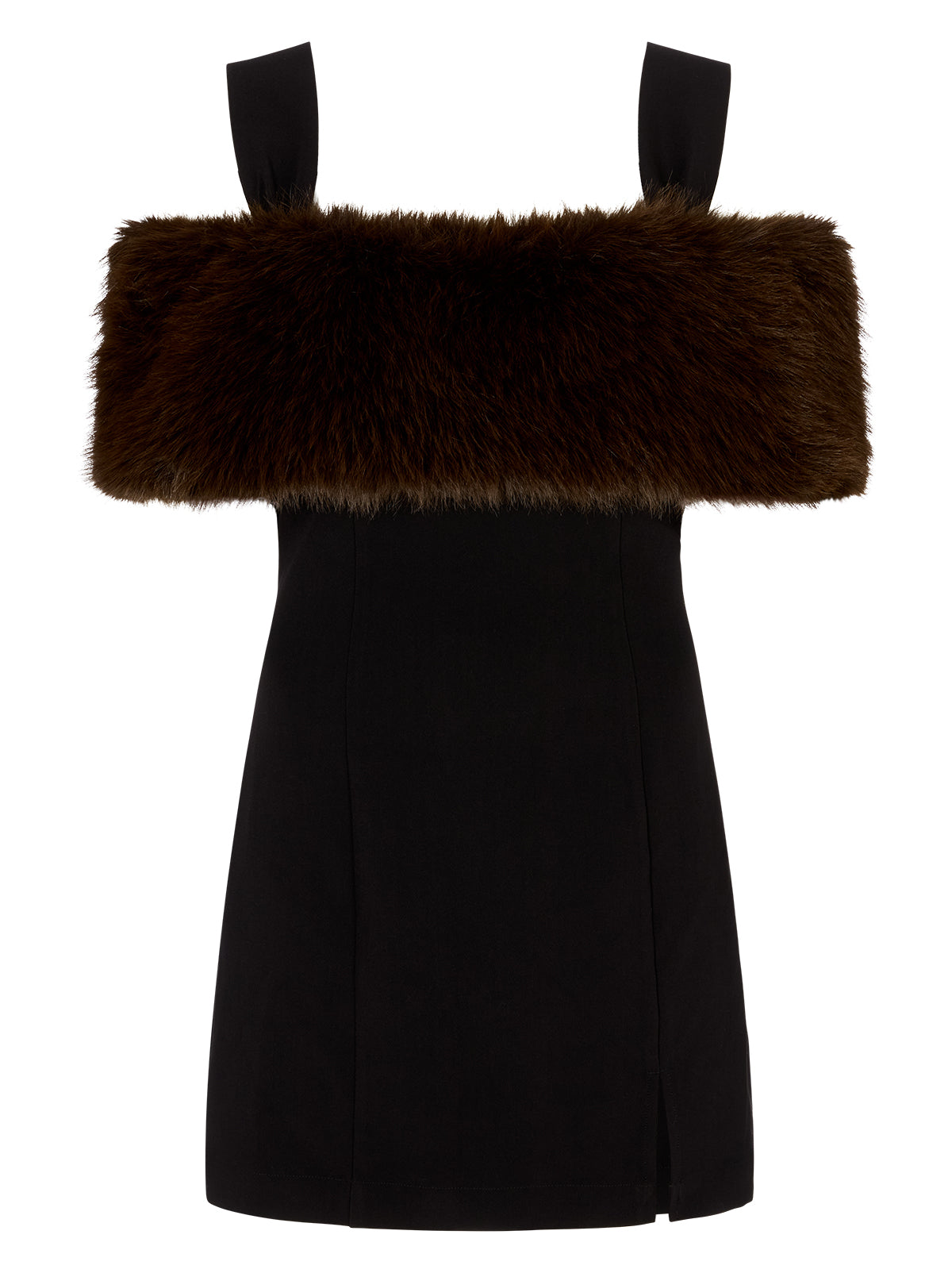 A little black dress with maximum versatility, the Marcella is your go-to for statement evenings. Crafted in a flattering wide-strap silhouette with a straight neckline, this mini dress comes with a detachable dark chocolate faux-fur stole - offering two looks in one. Wear it with the stole draped for vintage glamour, or without for a clean, modern finish. Perfect for party season and beyond.