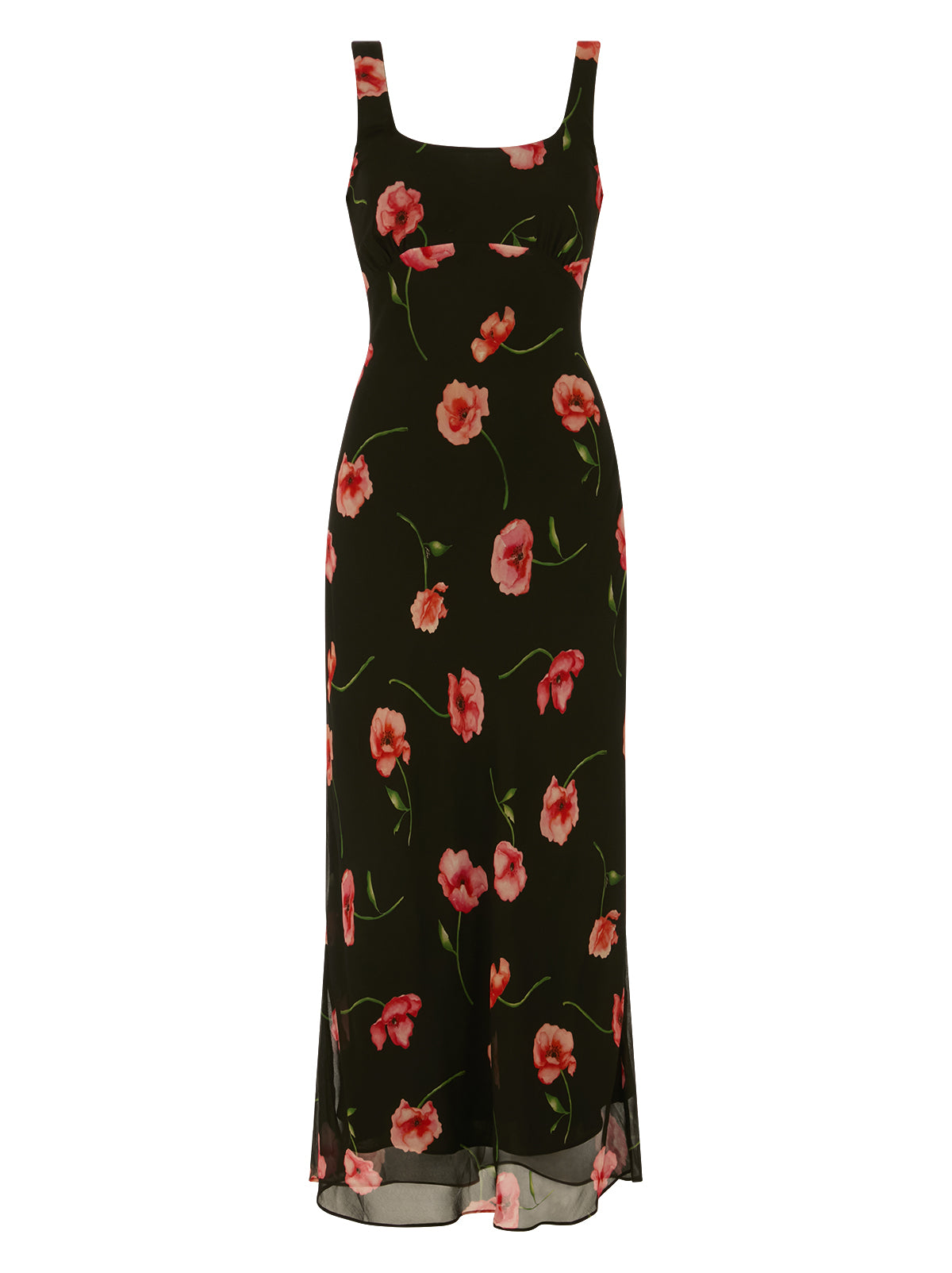 Miranda is a refined scoop-neck dress designed with a soft empire line that gently skims the body for an elegant, elongated silhouette. Made from lightweight viscose georgette, it moves beautifully with every step and feels effortless from day to night. The black base is decorated with our in-house painted, painterly poppy print, giving the dress a romantic, artful feel that’s perfect for warm days, summer events, and relaxed dinners. Fully lined for comfort and coverage, Miranda offers a timeless, feminine look with a modern ease that makes it an instant wardrobe favourite.