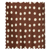 A hand-drawn polka dot print with softly blurred edges, creating a subtle ikat effect. Set against a rich chocolate brown base, the white spots feel organic and imperfect, giving the print depth and movement. Familiar yet distinctive, it offers a modern, relaxed take on a timeless polka dot.