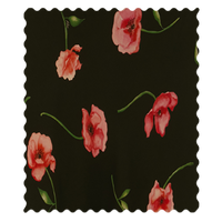 A hand-painted poppy print set against a deep black base. Vivid red flower heads drift across the fabric, connected by fluid basil-green stems that create a sense of movement and flow. The mid-scale repeat feels bold yet balanced, capturing the delicate strength of poppies in bloom. Striking and romantic, this print is designed to stand out while remaining timeless