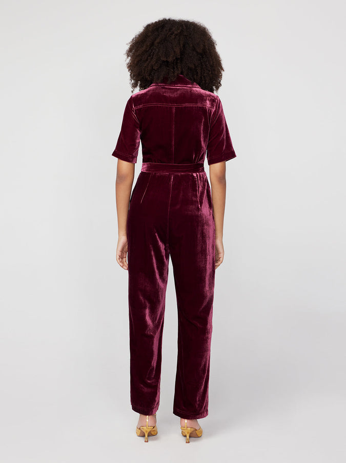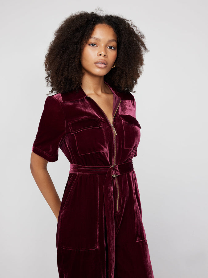 The one-and-done piece your wardrobe has been waiting for. Serena is a sophisticated velvet jumpsuit in a rich burgundy hue that feels as luxurious as it looks. Its flattering silhouette features a fitted bodice with a gold centre zip, creating a sleek and modern shape, while the relaxed leg and slightly flared hem keep it effortlessly chic. The patch pockets bring a touch of casual cool, making Serena versatile enough for day or night. Whether you’re attending a holiday gathering or a special evening out, this jumpsuit has you covered in undeniable style.
