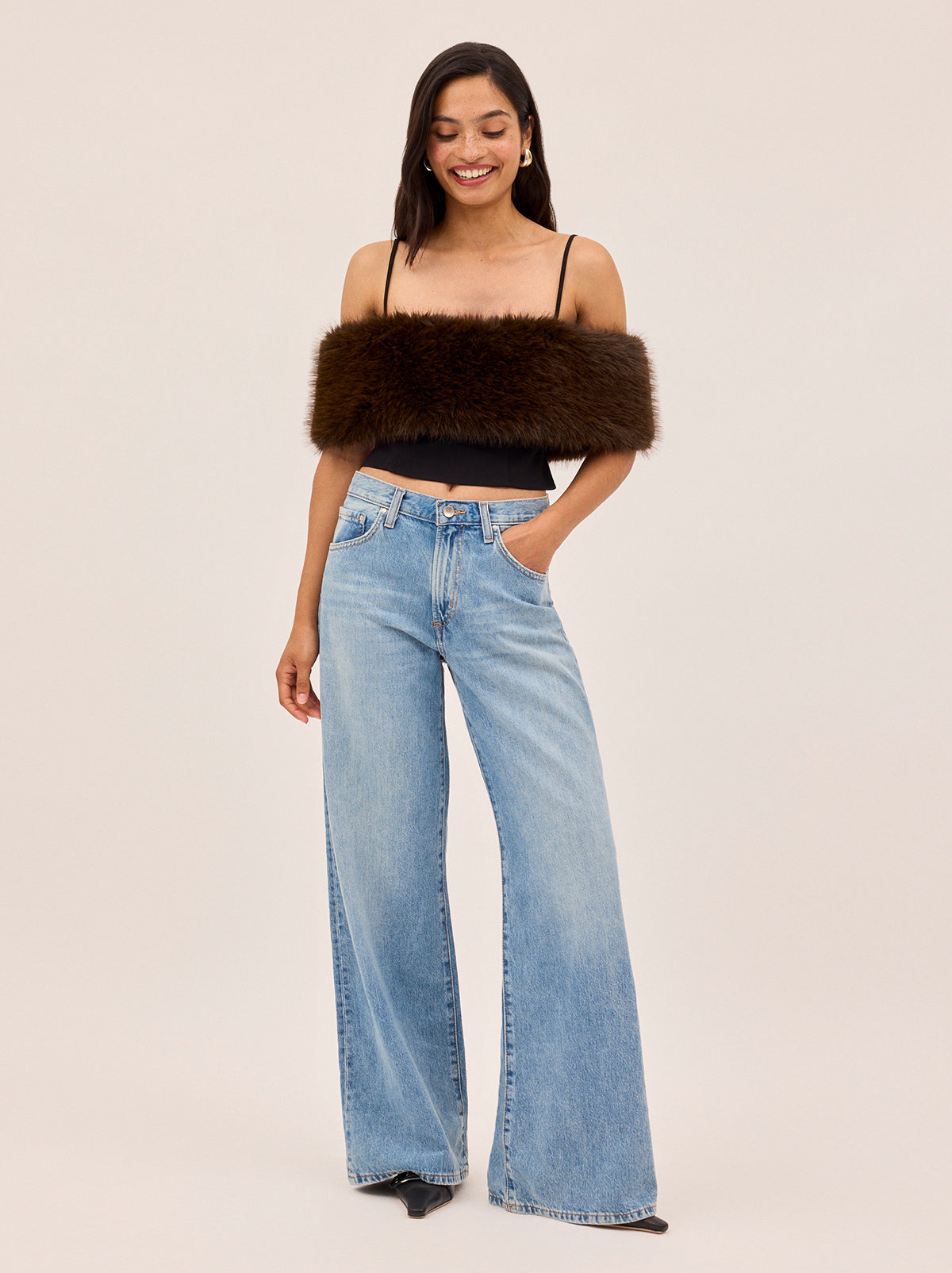 Effortlessly shifting from day-to-night, the Willa Black Top is your shortcut to instant glamour. Designed with delicate spaghetti straps featuring adjustable ties for the perfect fit, it comes with a detachable dark chocolate faux-fur stole that transforms the look in seconds. Wear it sleek and minimal for pared-back styling, or add the plush stole for a dramatic, winter-ready finish. Perfect for layering under tailoring, pairing with jeans, or dressing up with a statement skirt, this is a wardrobe hero you’ll return to all season long.