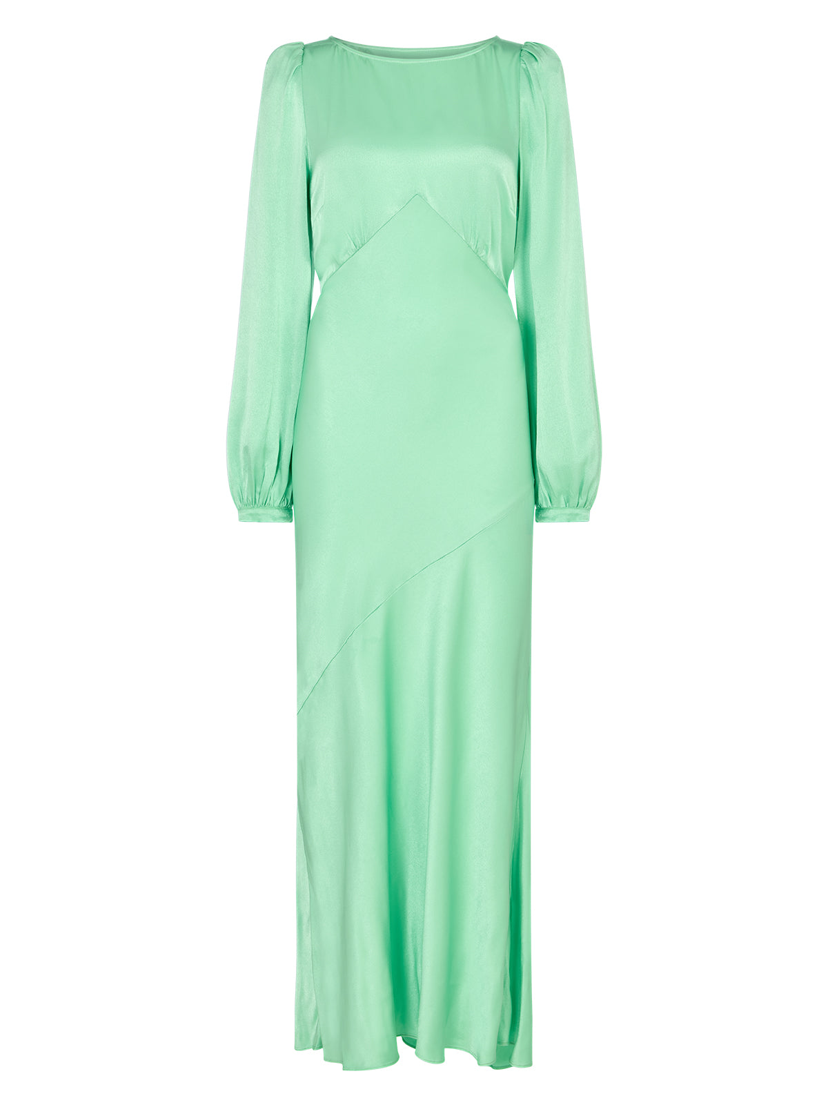 Slip into timeless elegance with this flowing Yara Mint Satin Maxi Dress, designed to turn heads from every angle. Cut on the bias for a beautifully fluid drape, the skirt features subtle panel detailing and a flattering waist seam that defines your silhouette. A wide, graceful neckline and voluminous long sleeves add vintage-inspired glamour, while the deep V-back delivers an unexpected touch of drama. The fresh mint hue makes it a standout choice for both daytime events and evening occasions.